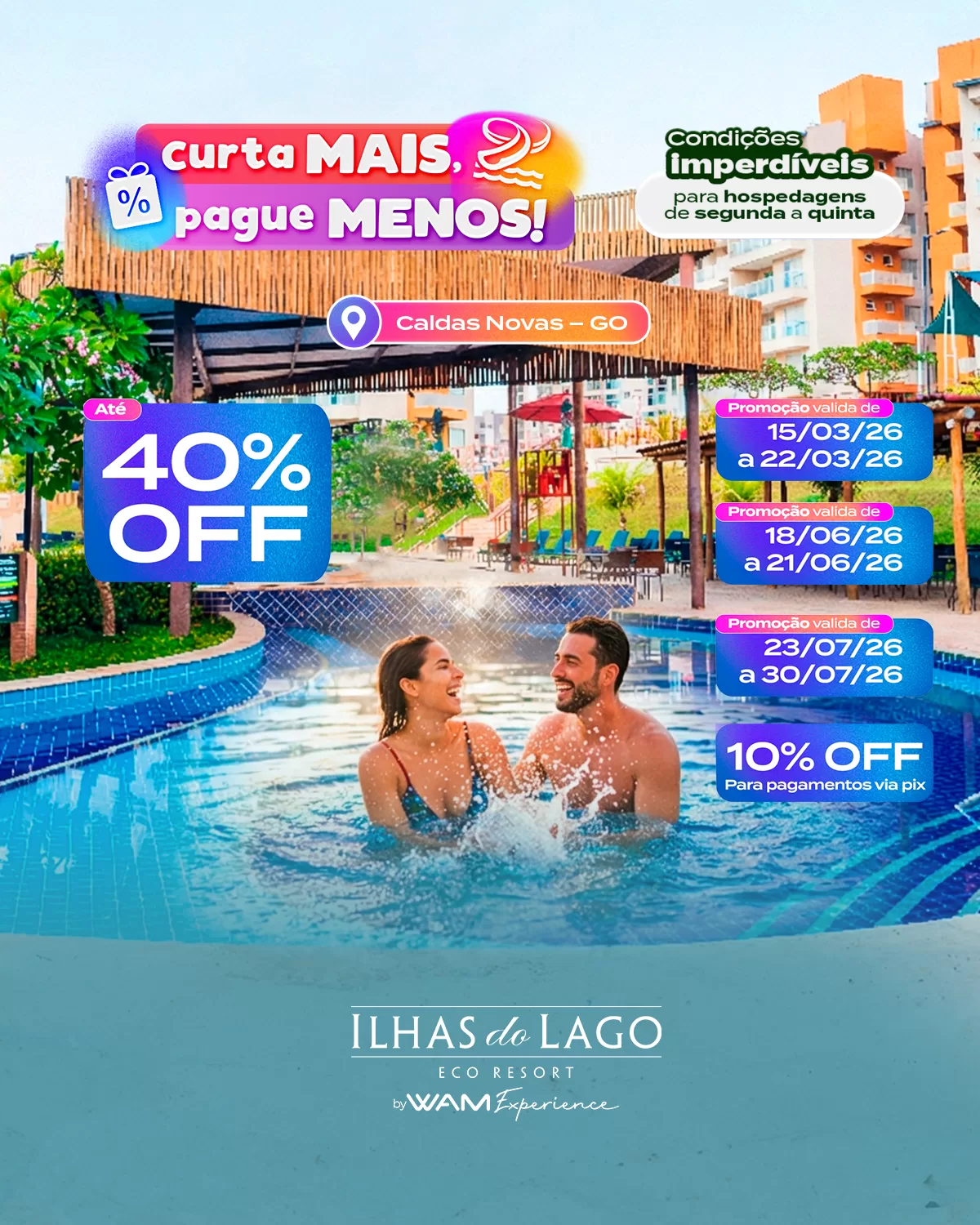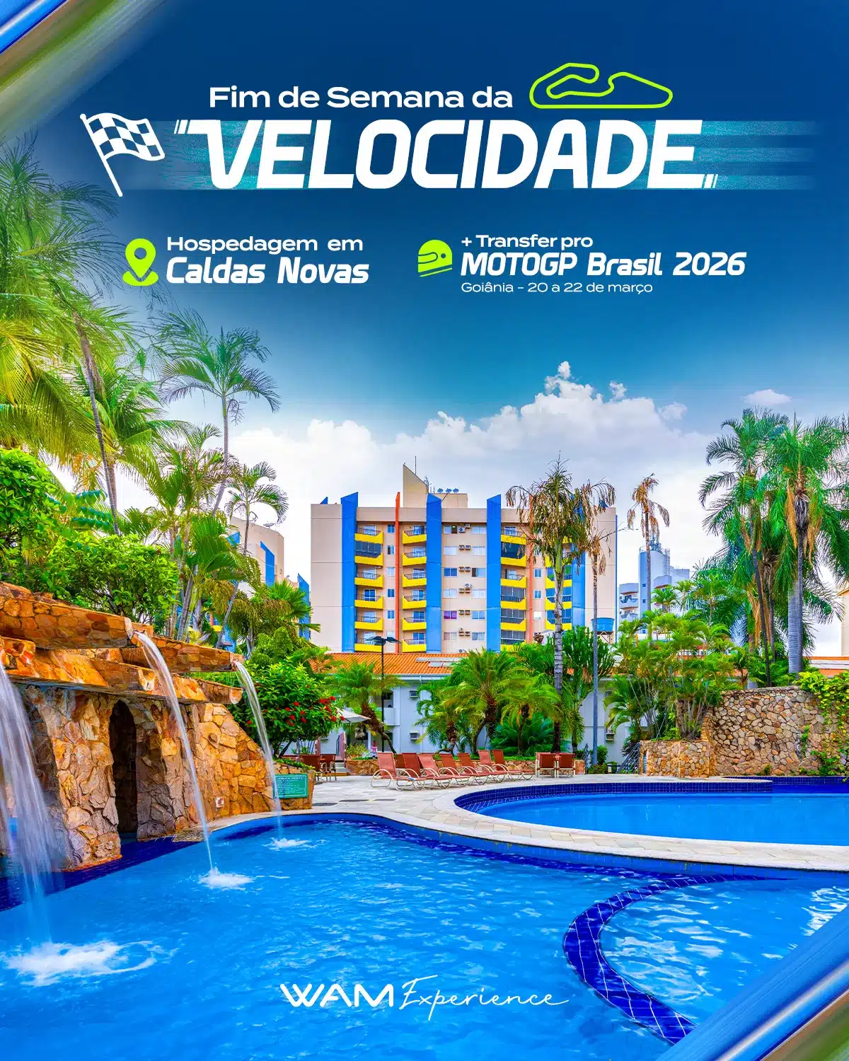 O empreendimento conta com estrutura completa de lazer e entretenimento e fica estrategicamente localizado no centro turístico, onde se concentramos principais comércios e atrações de lazer da cidade. Dentre elas, destacam-se os melhores parques aquáticos de Caldas Novas: o Clube Privé e o Water Park, ambos da WAM Parks.